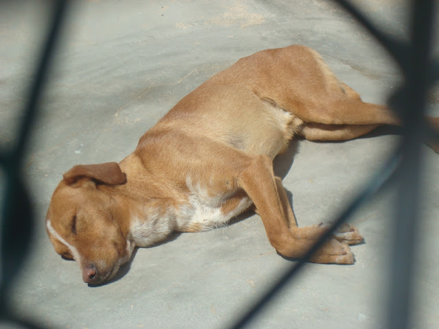 | Depois da cirurgia, uns dias após o atropelamento. Com uma pata com tala e a operada completamente imobilizada. Recuperou totalmente! |