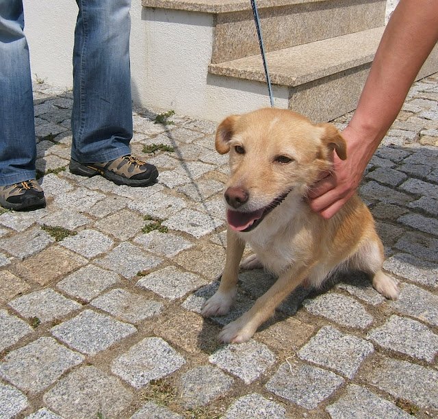 Aqui podem ver a diferença de uma Joaninha de há 2 anos, que se encolhia, deitava e pulava quando se tentava por uma trela e de uma Joaninha actual, a passear ao lado das nossas pernas e na companhia dos seus simpáticos e formidáveis amigos, Piqué e Paquita, em parte, grandes responsáveis pela socialização da Joaninha.
